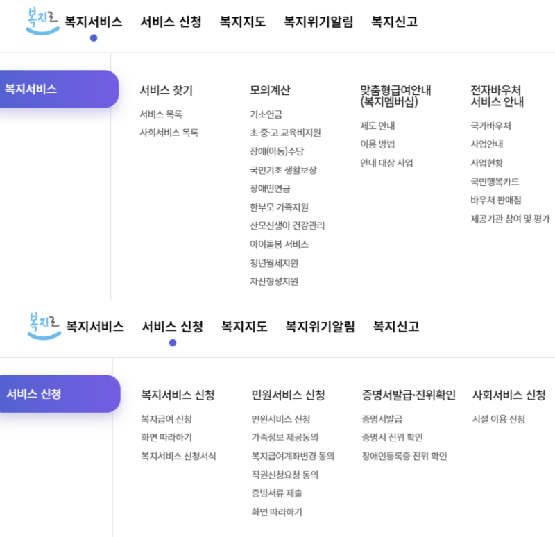 - 다양한 복지 서비스(현금 급여, 서비스 지원, 물품 지원 등) 정보를 제공합니다.