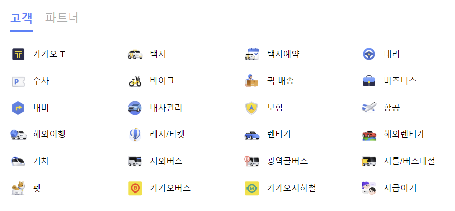 카카오 T 전체 서비스