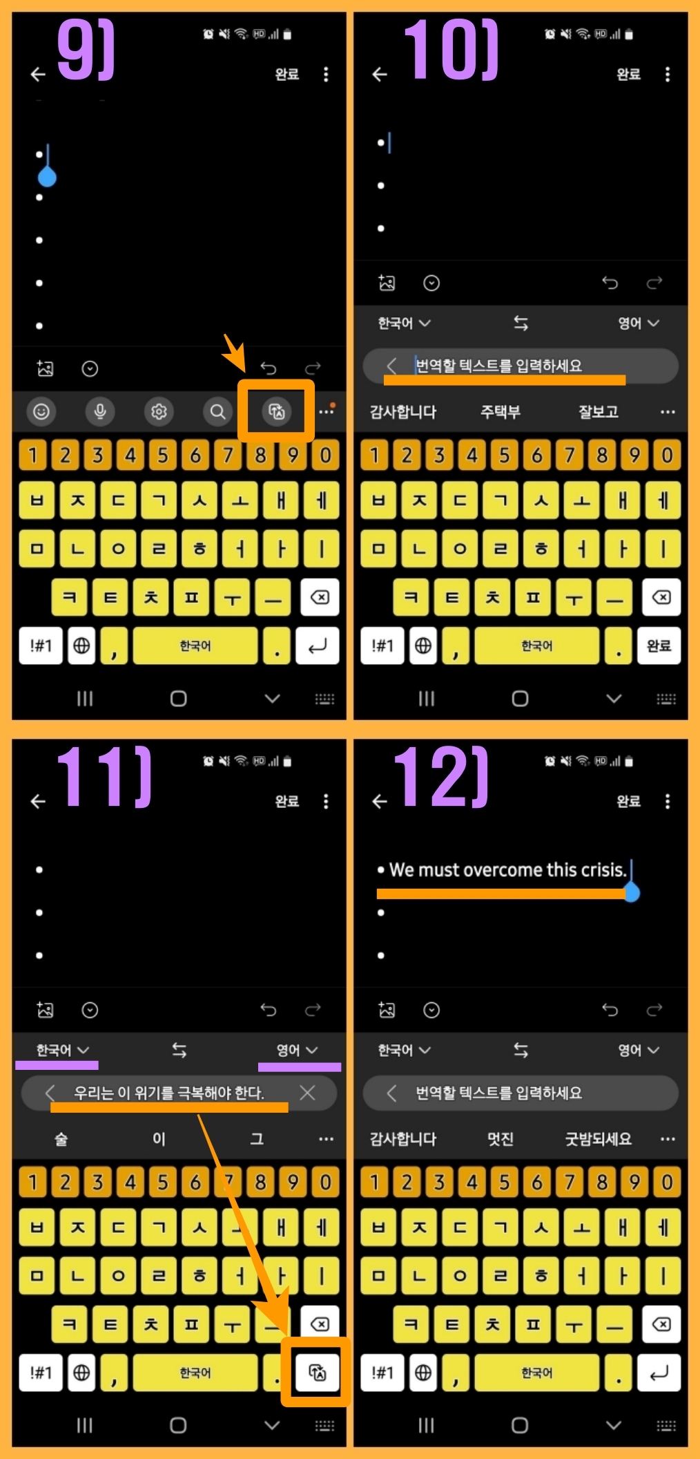 11) '우리는 이 위기를 극복해야 한다.'