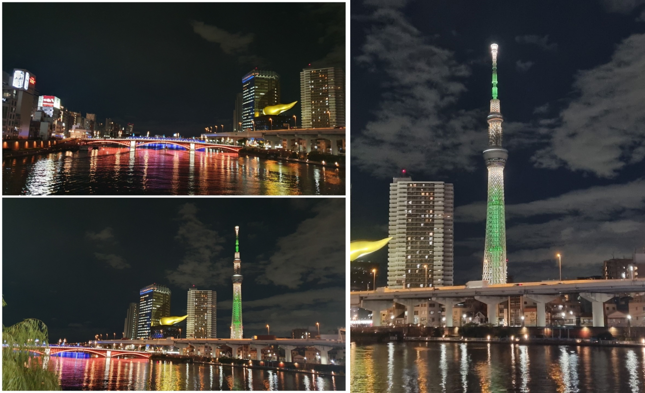도쿄 스카이트리 가는 길 스미다 강가와 스카이트리가 멋진 야경을 보여주고 있었습니다.